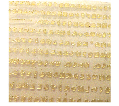 【2】データから凸版を作ります。プリンティの活版印刷はほとんどが樹脂版です。樹脂版の方が現在では印刷しやすく、安価です。もちろんシャープな印刷をお望みであれば金属版で印刷することも出来ます。硬度の高い樹脂版もご用意していますので、かなり樹脂版でシャープさを求めることも可能です。